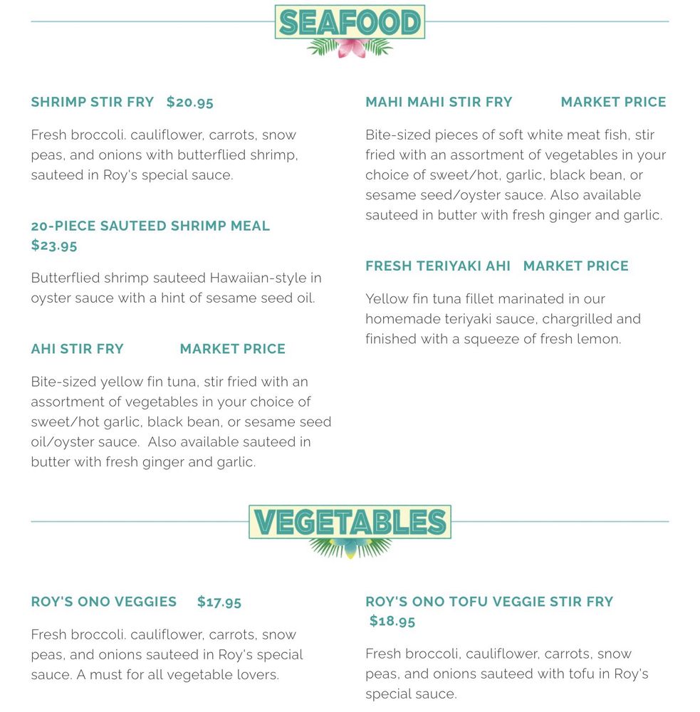 Fresh broccoli, cauliflower, carrots, snow peas, and onions sauteed in roy's special sauce. A must for all vegetable lovers.